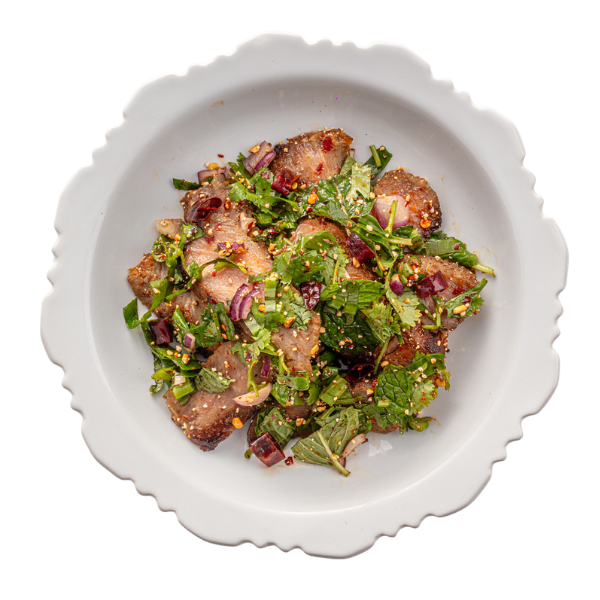 Spicy Isaan Style Salad with Grilled Pork RM25.90 伊森风味辣沙拉烤猪颈肉 ยำรสจัดยำคอหมูย่าง Yam Rot Jad Kor Moo Yang Category: Salad