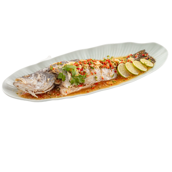 Steamed Seabass with Spicy Lime Garlic Sauce RM64.90 泰式青柠酸辣蒸金目鲈 Pla Kapong Neung Manao ปลากะพงนึ่งมะนาว Category: Fish